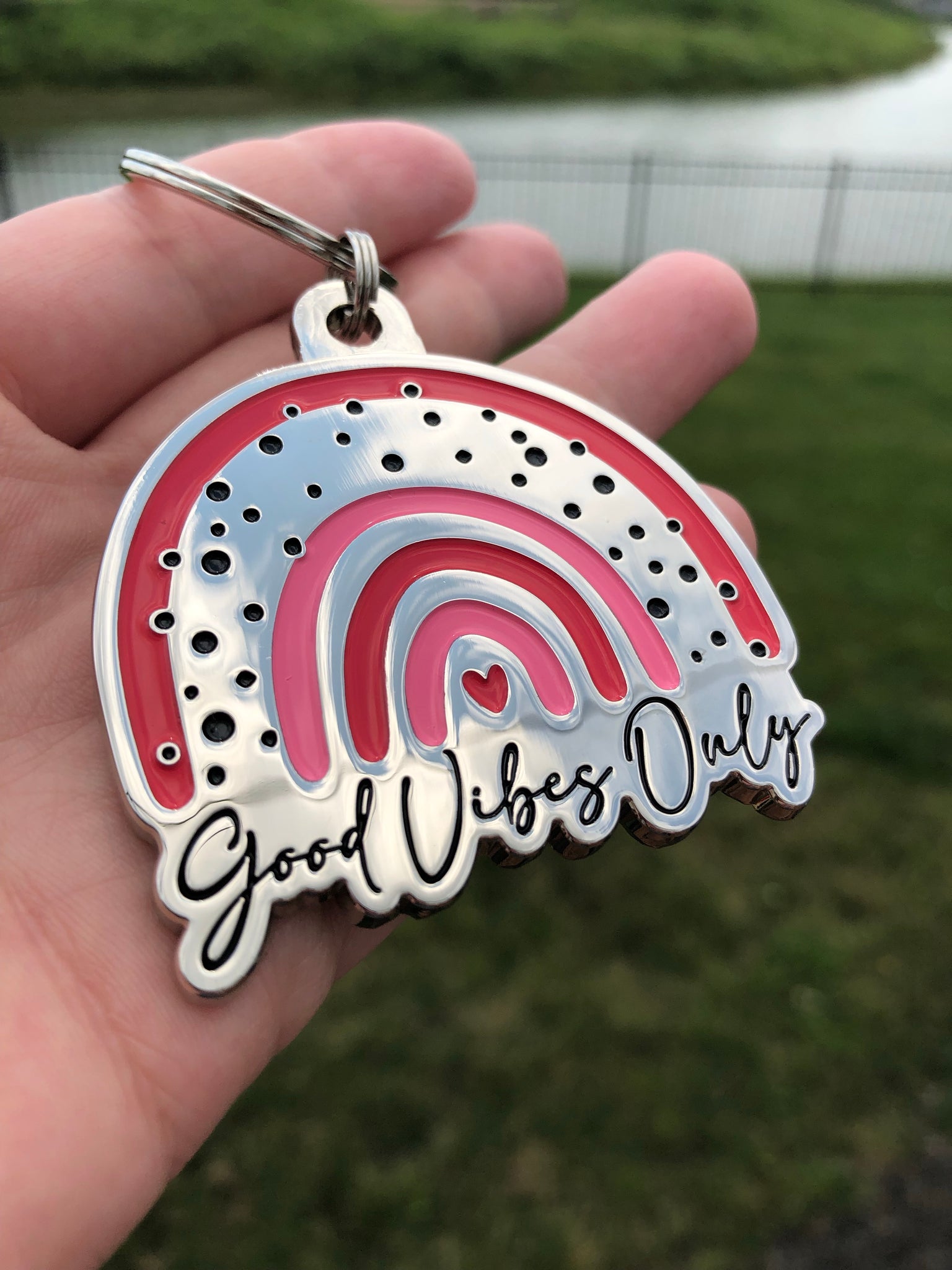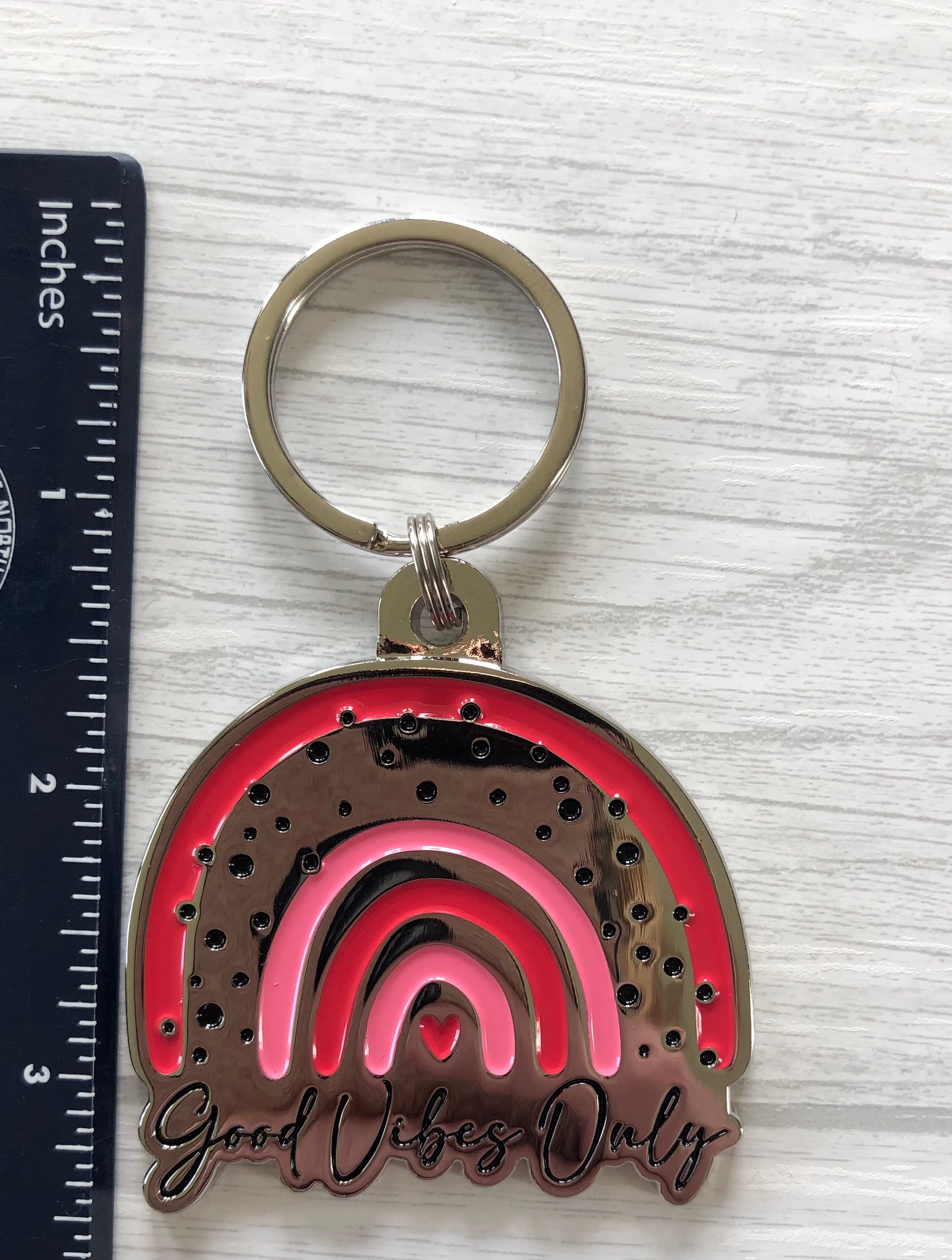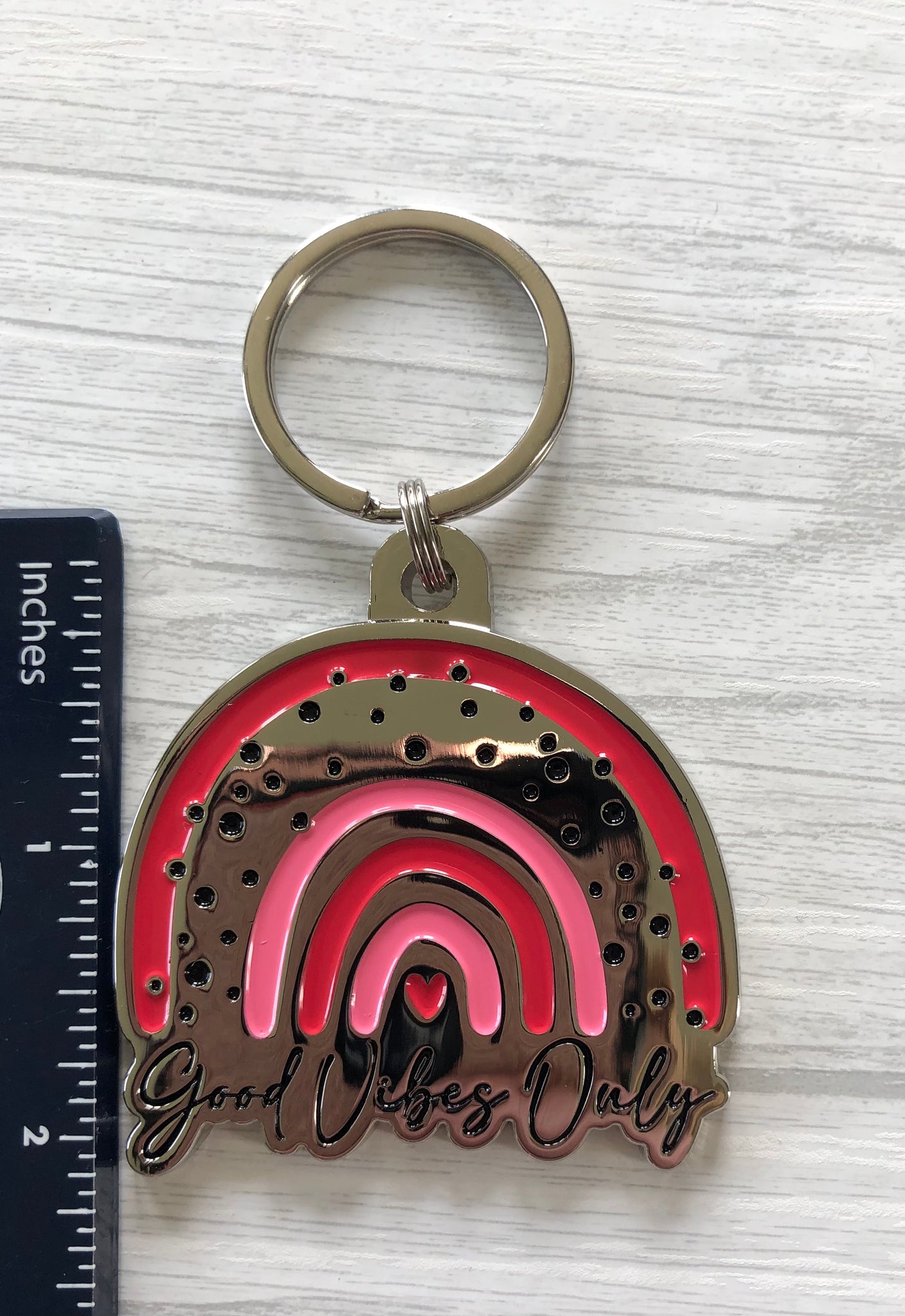 Rainbow good vibes only metal keychain. Wonderful quality!